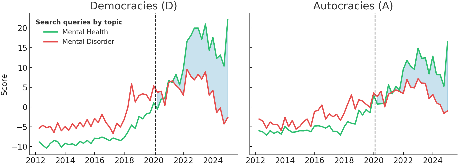 Using longitudinal data from Google Trends across over 100 countries, we analyze how public interest moved away from severe psychiatric disorders toward general mental health and preventive wellbeing. We treat search behavior as a proxy for public attention and, by extension, underlying demand for specific types of mental health knowledge and services. We show that while interest in both severe disorders (e.g., obsessive-compulsive disorder and borderline personality disorder) and general mental health surged immediately after the pandemic’s onset, the trajectories subsequently diverged. Interest in severe disorders declined and plateaued. At the same time, interest in mental health and wellbeing continued to grow. This suggests a shift from reactive treatment-seeking to proactive self-regulation. The magnitude of this reversal, however, varies by regime type. In democracies the effect is pronounced, while in non-democracies it is less than half as large. To explain this asymmetry, we develop a theory in which authoritarian regimes deliberately maintain higher levels of social stress as a tool of political control. By keeping populations under persistent strain, autocrats reduce the scope for a full reorientation toward proactive wellbeing. The paper contributes to the emerging literature on the economics of public health by documenting an “attentional reversal.” In spirit, though not in mechanism, it resembles Acemoglu et al.’s institutional reversal in development economics.